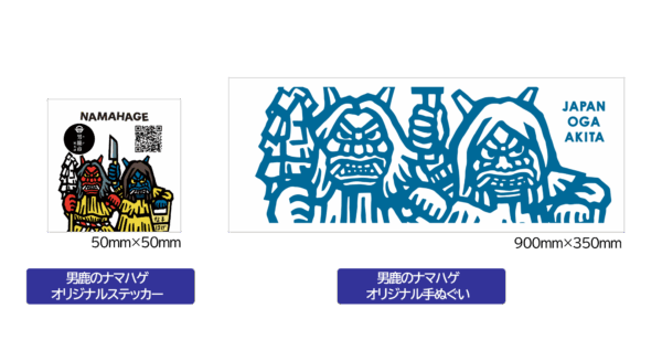 簡単なアンケートにお答えいただき、福引きにチャレンジしていただくことで「男鹿のナマハゲ オリジナルステッカー」または「男鹿のナマハゲ オリジナル手ぬぐい」のどちらかが当たります。