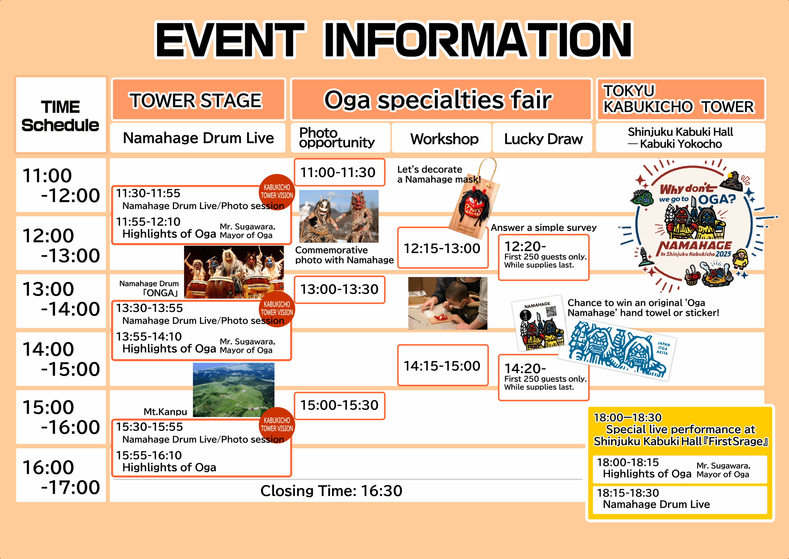 Please be at the Namahage Craft Workshop Booth in the venue at least five minutes before your session begins.