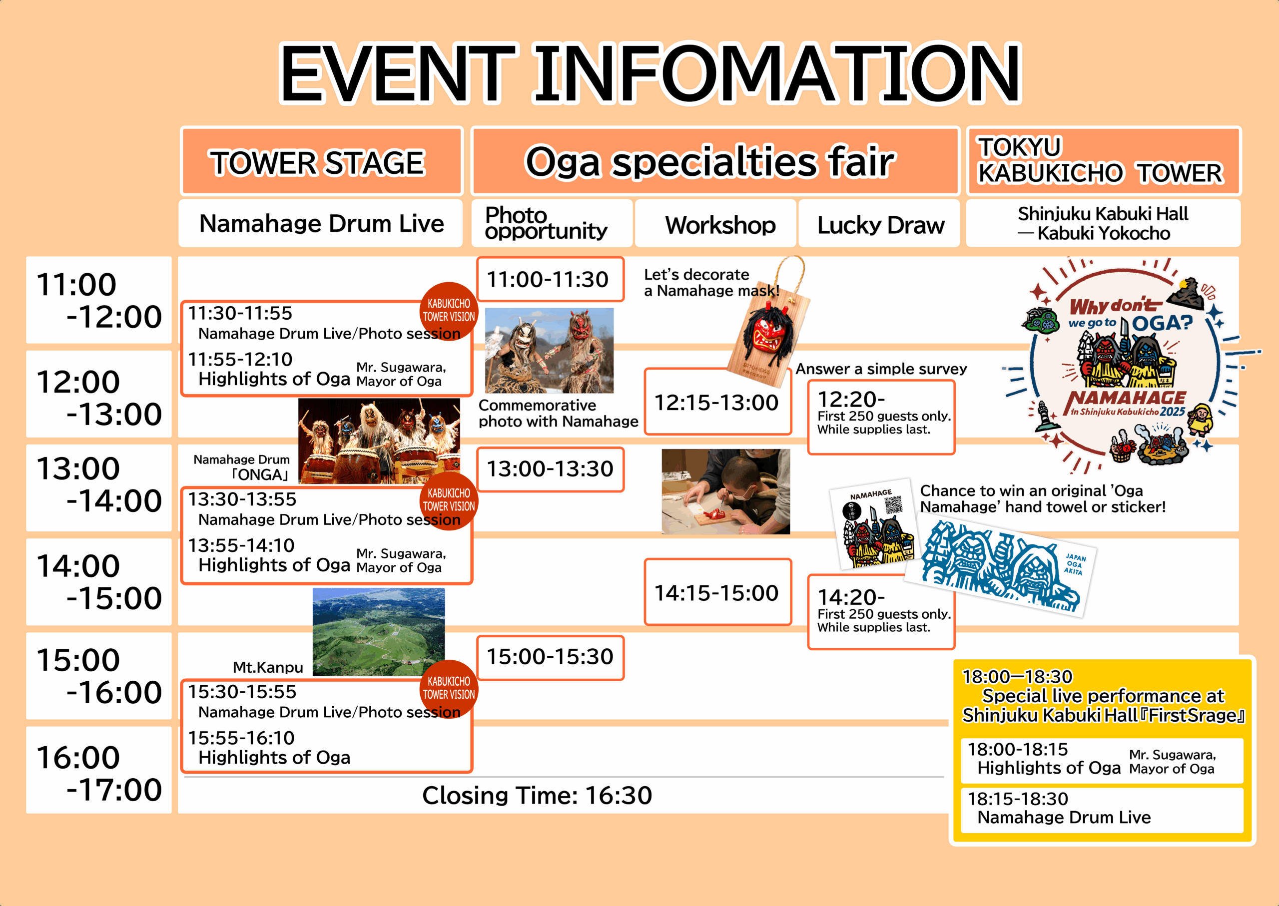 Please be at the Namahage Craft Workshop Booth in the venue at least five minutes before your session begins.