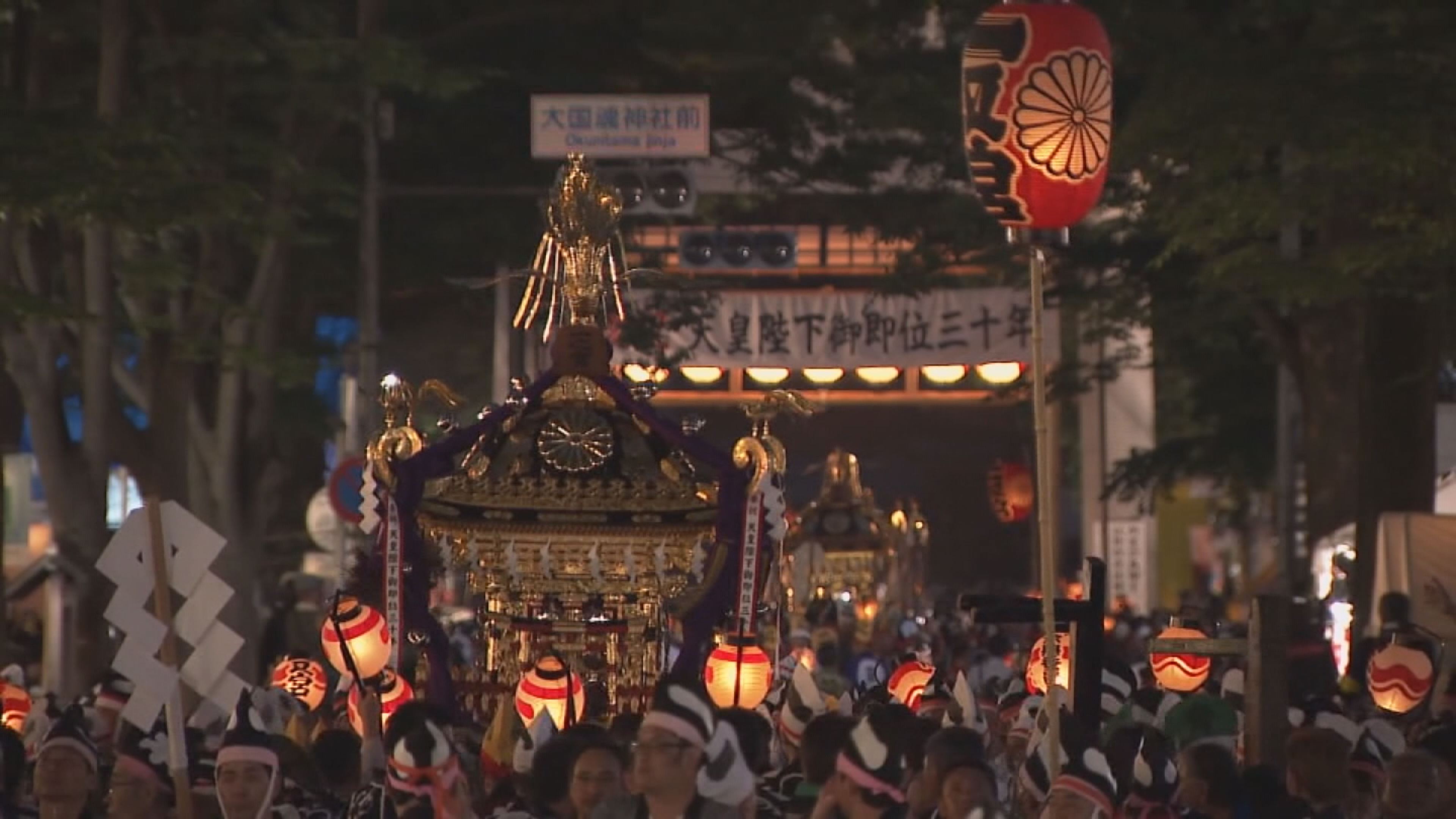 1900年の伝統を誇る「くらやみ祭」。 祭りのハイライトである「神輿渡御」を放送。六張(台)の大太鼓が地鳴りのごとく打ち鳴らされるなか、八基の神輿の担ぎ手が、大鳥居から馬場大門けやき並木などを通り、府中街道の御旅所まで練り歩く様子を臨場感たっぷりにお伝えします。