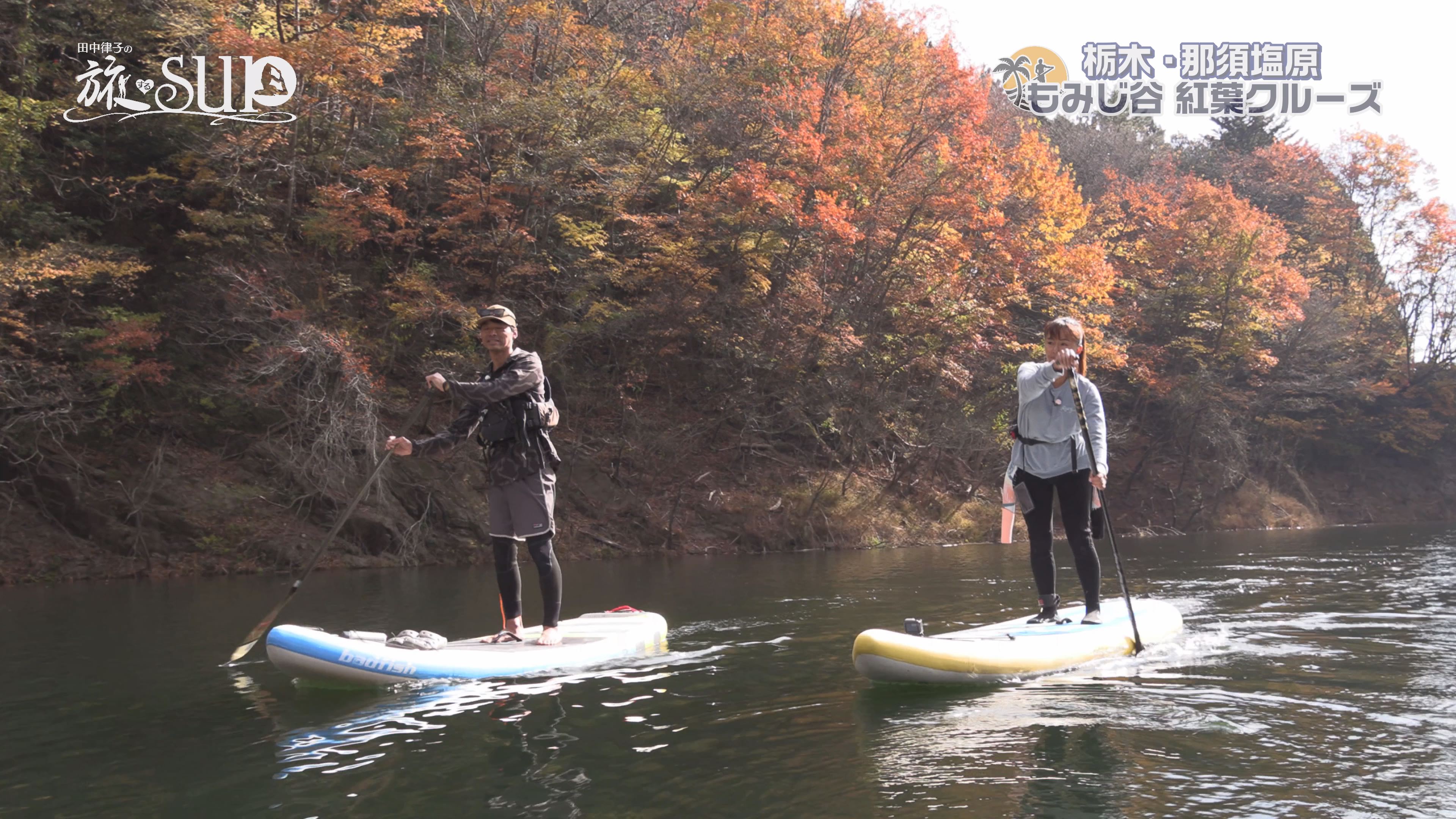 田中律子さんが、SUPでクルージング! いつもよりちょっとだけ時間がゆっくり流れる癒しの番組です。今回は、紅葉が最高潮の那須塩原・もみじ谷を旅SUP!全長320mのもみじ谷大吊橋や、落差およそ40mの回顧の滝を下から見上げる絶景をぜひご堪能あれ!
