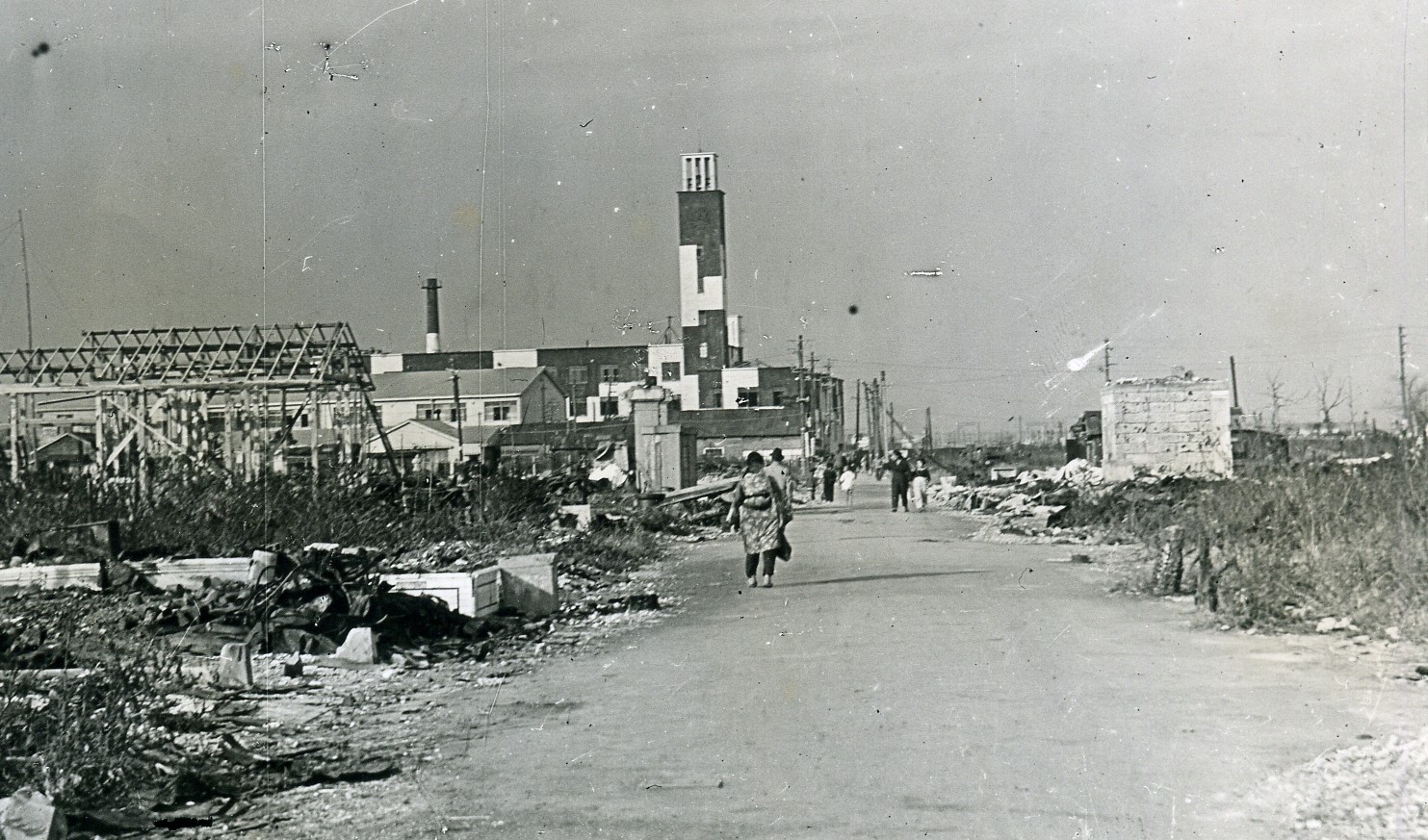 この爆撃によって川崎市の中心部は市役所を残して一面の焼け野原となり、市内人口の約3分の1の10万人を超える罹災者がでました。