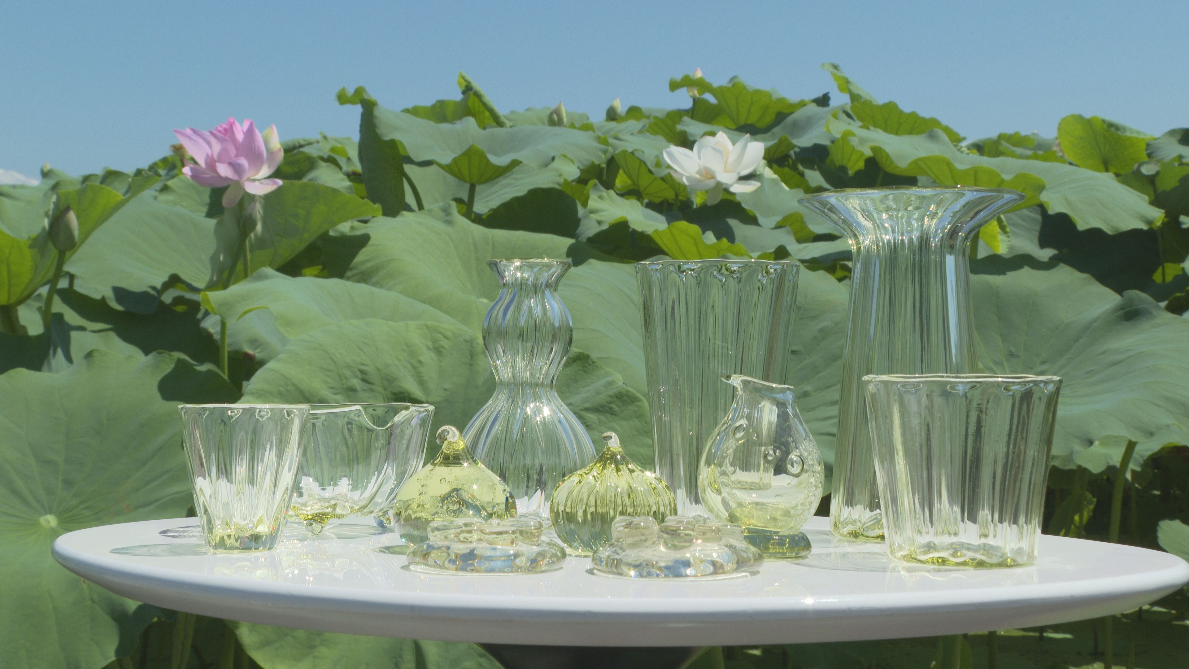 収穫後の畑に残った、岩国れんこんの葉や根などを燃やした灰で生まれる、春の新芽のような「若緑色」。 岩国ならではの色付けをしたガラス細工を作り続ける「ガラス工房〇(まる)」の取り組みや、もの作りへの思いを取材しました。