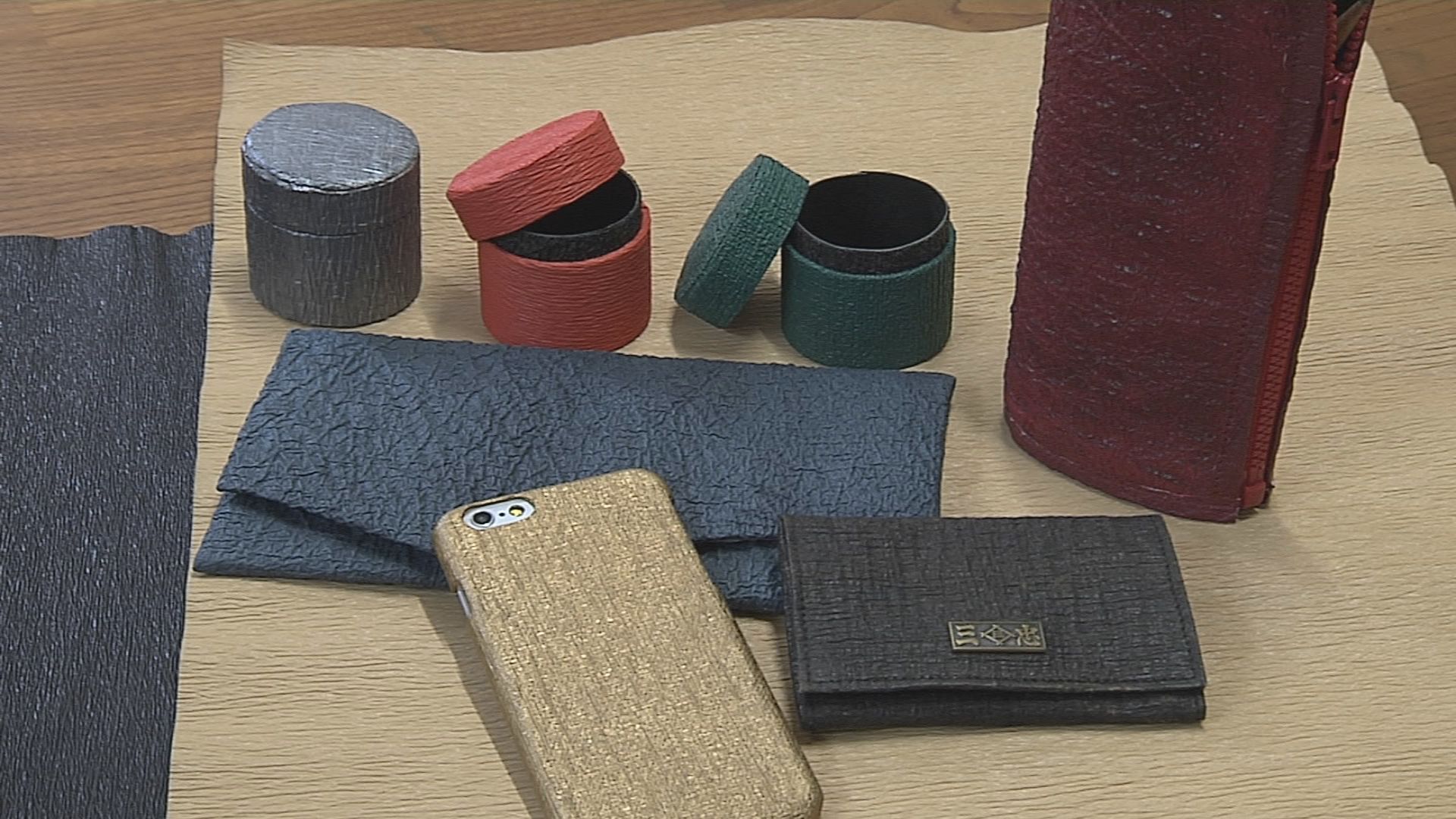 江戸時代から昭和の初期、当時は貴重だった革製品に似せて作られていた「擬革紙」。 擬革紙製の煙草入れはお伊勢参りの代表的なお土産として大ヒットしました。 昭和に入ると、革製品が普及し始め衰退していった擬革紙ですが、2009年から製作技術の復興に取り組み始め、今では「参宮ブランド擬革紙の会」が擬革紙製作や商品開発などを行っていて、2013年には三重県の伝統工芸品にも指定されました。