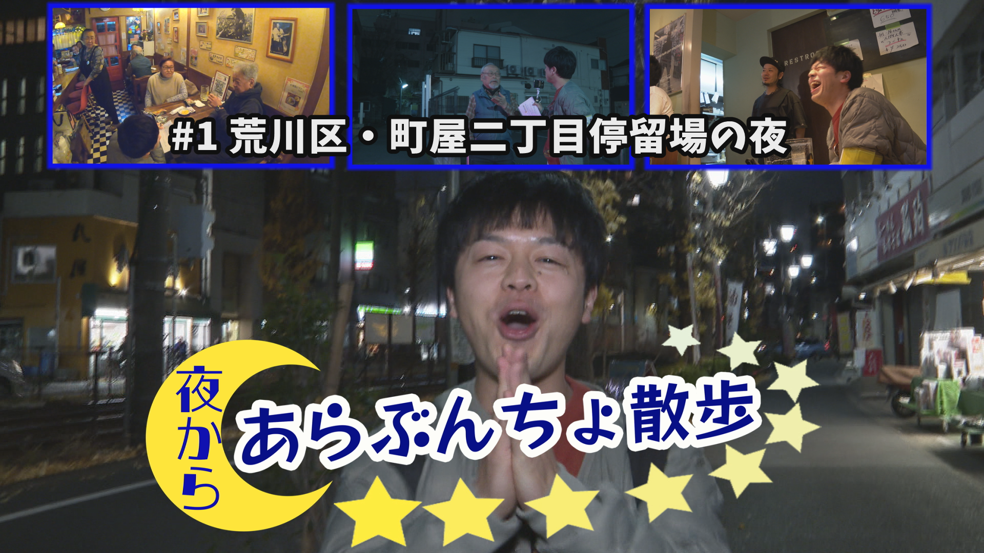 “あらぶんちょ散歩”のスピンオフ番組、通称『夜から』。 ターリーターキーがおじゃました場所と同じところを、ヴェートーベン久保が夜目線でお散歩、地元のみなさんとふれあいます。 第1回となる《夜からスポット》は、荒川区町屋二丁目停留場(東京さくらトラム・都電荒川線)周辺!夜から出かける街は一体どんな表情を見せてくれるのか!? 出演:ヴェートーベン久保