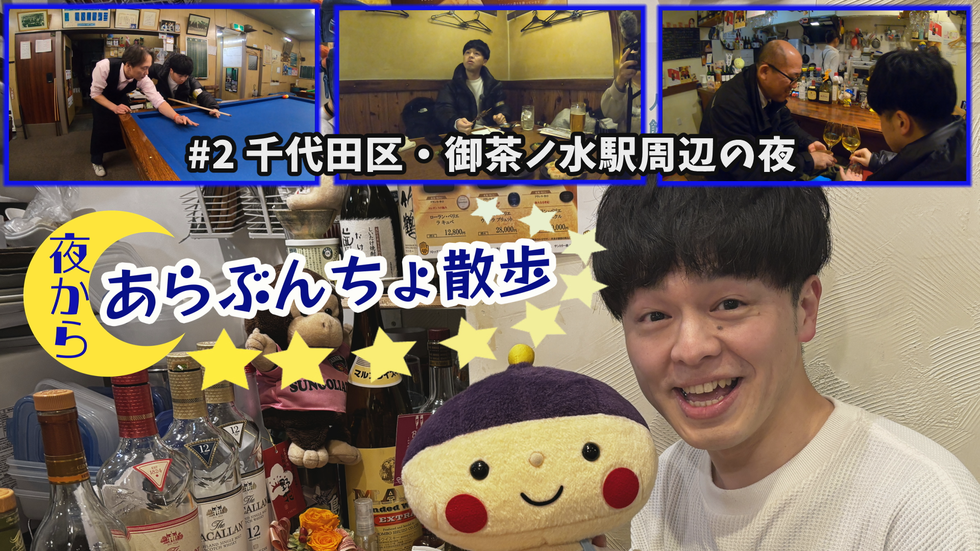 “あらぶんちょ散歩”のスピンオフ番組、通称『夜から』。 ターリーターキーがおじゃました場所と同じところを、ヴェートーベン久保が夜目線でお散歩、地元のみなさんとふれあいます。 今回は千代田区御茶ノ水駅の夜!あいにくの雨の中、オフィス街でもあり、学生街でもあり、楽器街でもある御茶ノ水エリアで、いろいろな人と出会い、もちろん、美味しいお酒と美味しいお料理も堪能する! 夜の御茶ノ水も、なかなか良いですよ〜 出演:ヴェートーベン久保