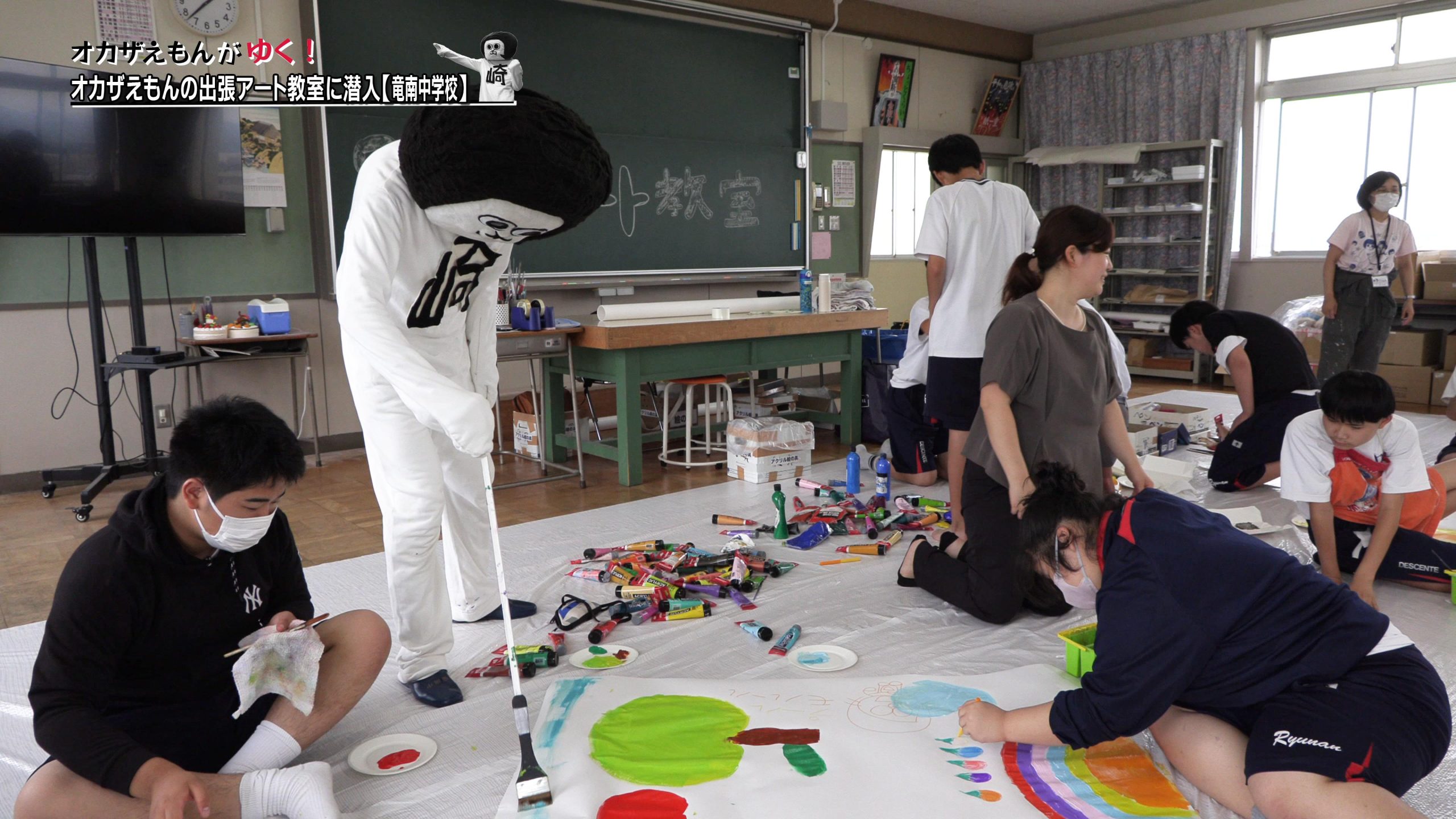 2012年の「岡崎現代アート&ジャズ2012」で生まれ、岡崎アート広報大臣も務めるオカザえもんが毎年行っている「オカザえもんの出張アート教室」。市内の小中学校を巡り、子どもたちと一つの作品を制作する。今回は、竜南中学校にお邪魔し出張アート教室の様子をレポート!オカザえもんは、竜南中学校の生徒たちとどんな作品を作るのか!? 出演:オカザえもん/神谷和花