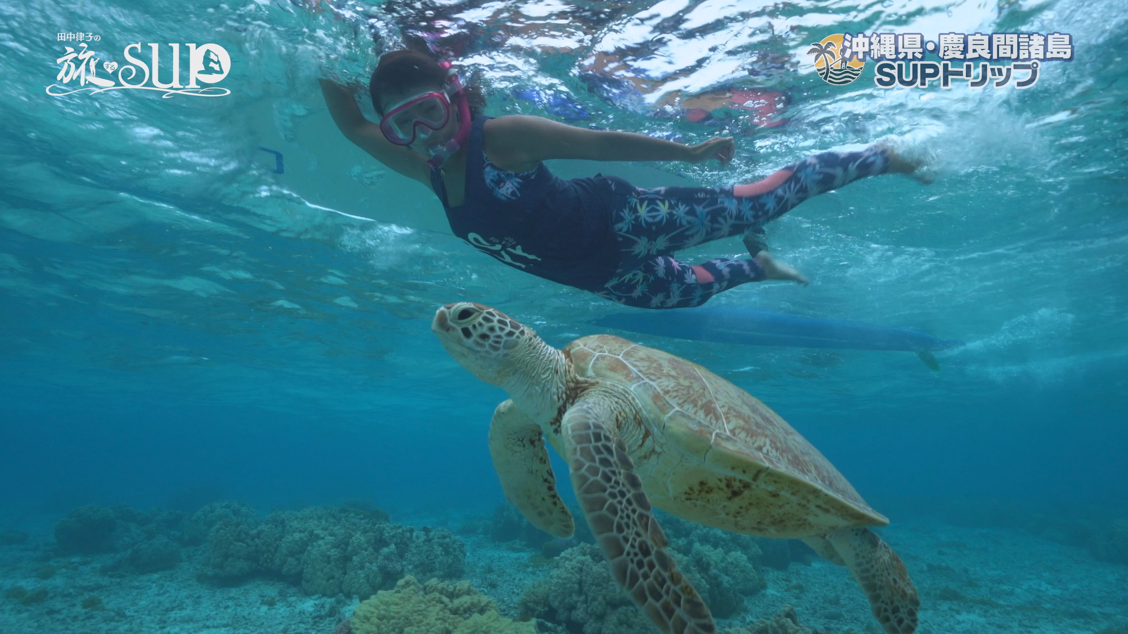 日本サップヨガ協会理事長を務める田中律子さんが、SUPでクルージングしたり、ヨガをしたりと、いつもよりちょっとだけ時間がゆっくり流れる癒しのSUP番組「田中律子の旅するSUP Season.2」。今回はウミガメとの遭遇率が高い慶良間 諸島の「阿真ビーチ」をクルージング。律子さん念願の「ウミガメとのランデブー」を楽しみます。