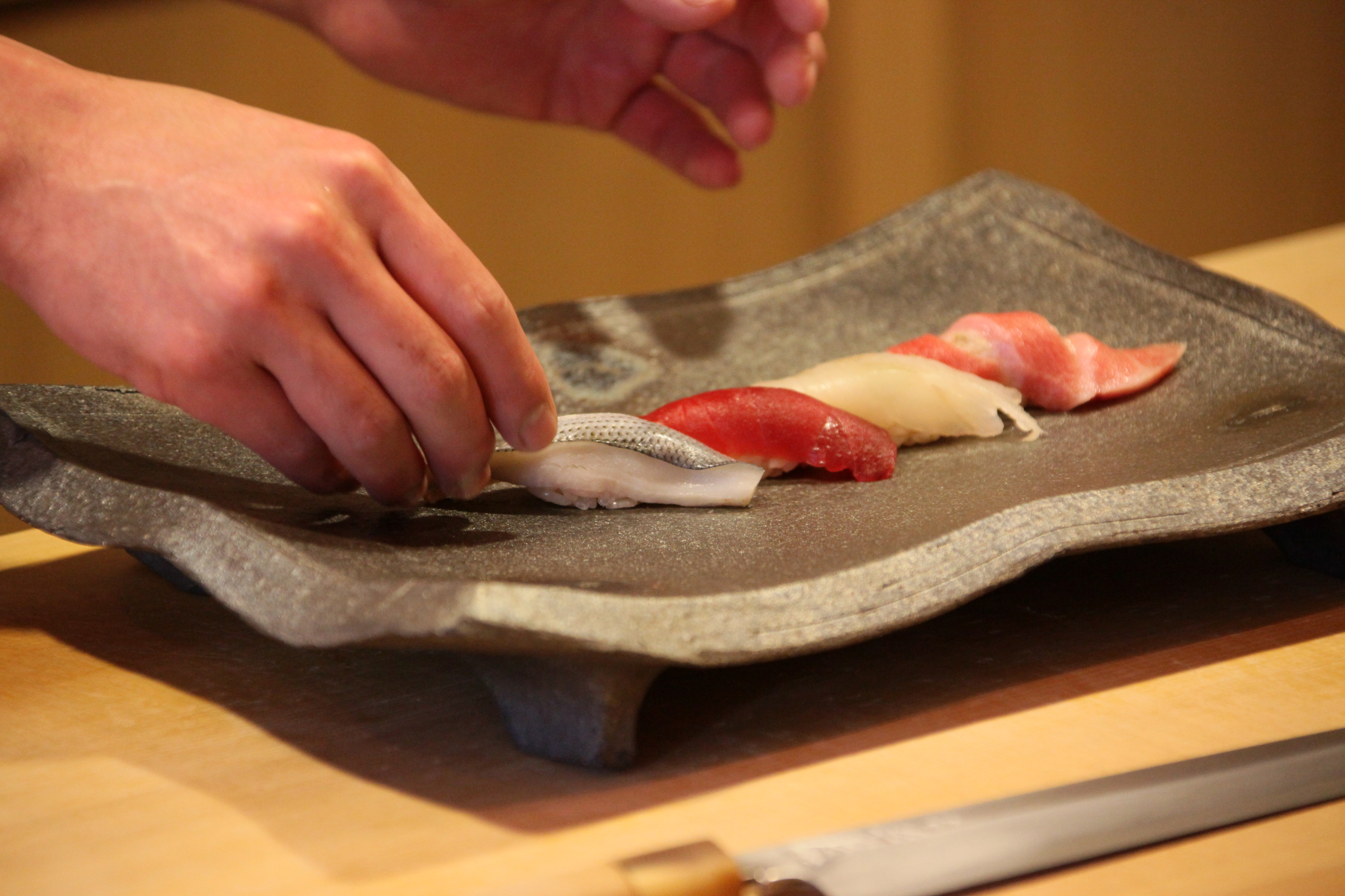 江戸・東京の郷土料理が全国に広まり、国民食になったともいえる「寿司」。 酢〆・ヅケ・煮るなどの仕事を施された鮮魚を 酢飯とともに握る。 食べる芸術、江戸前寿司の美、そして技を紹介する。